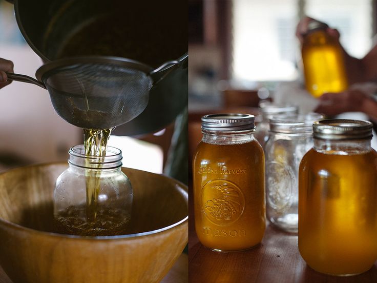Se debe colar el ghee, mientras todavía esté caliente o templado, para luego envasarlo directamente en potes de vidrio o tazones.